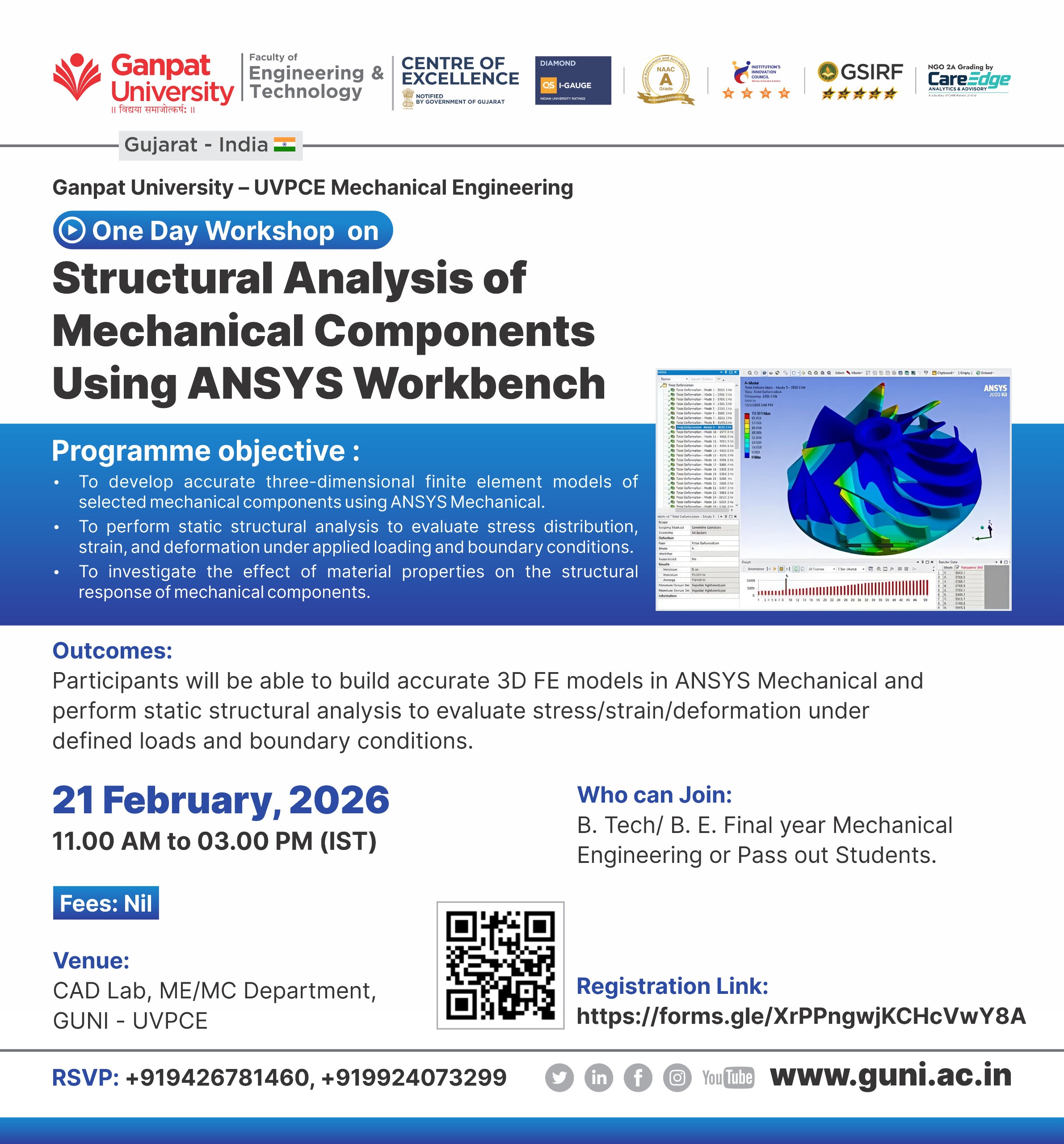 One Day Workshop on “Structural Analysis of Mechanical Components Using ANSYS Workbench”